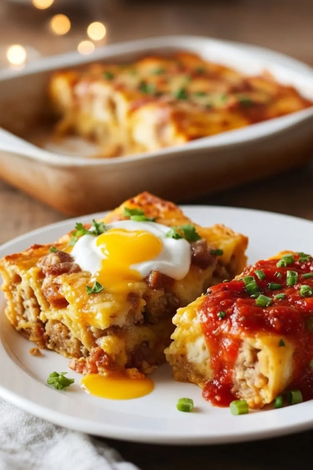 Let the casserole rest for about 5–10 minutes before cutting. This helps it hold together and makes serving easier. Add your favorite toppings and enjoy while it’s warm.