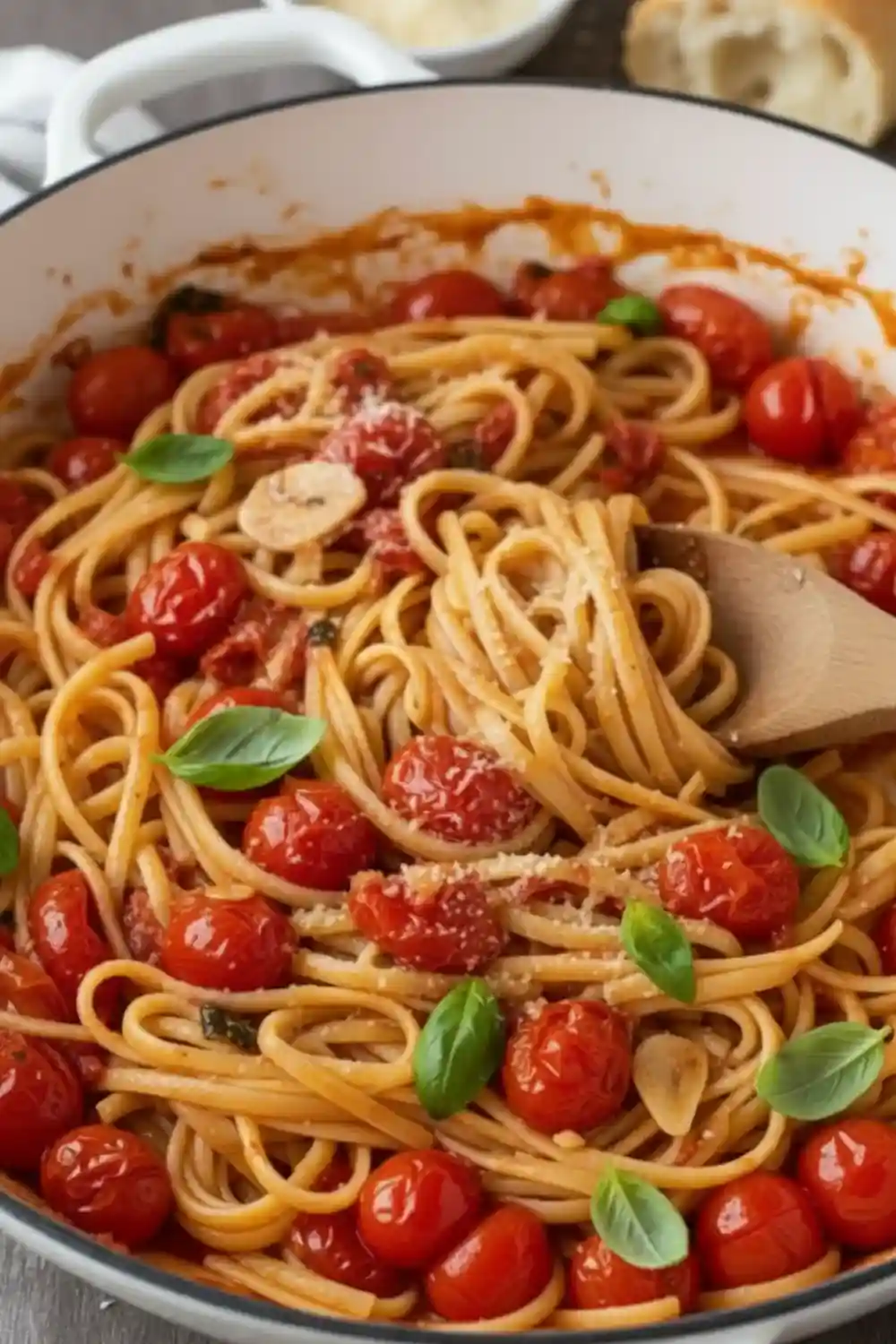 The best results come from simple decisions. Keep the heat low at the start so the garlic softens instead of burning. Use pasta water to thicken the sauce instead of adding extra oil; it helps everything cling to the noodles. Taste for salt before serving because tomatoes need a little seasoning to shine. Always add basil at the end so it stays bright and aromatic. A final drizzle of good olive oil brings the flavors together without making the dish heavy.